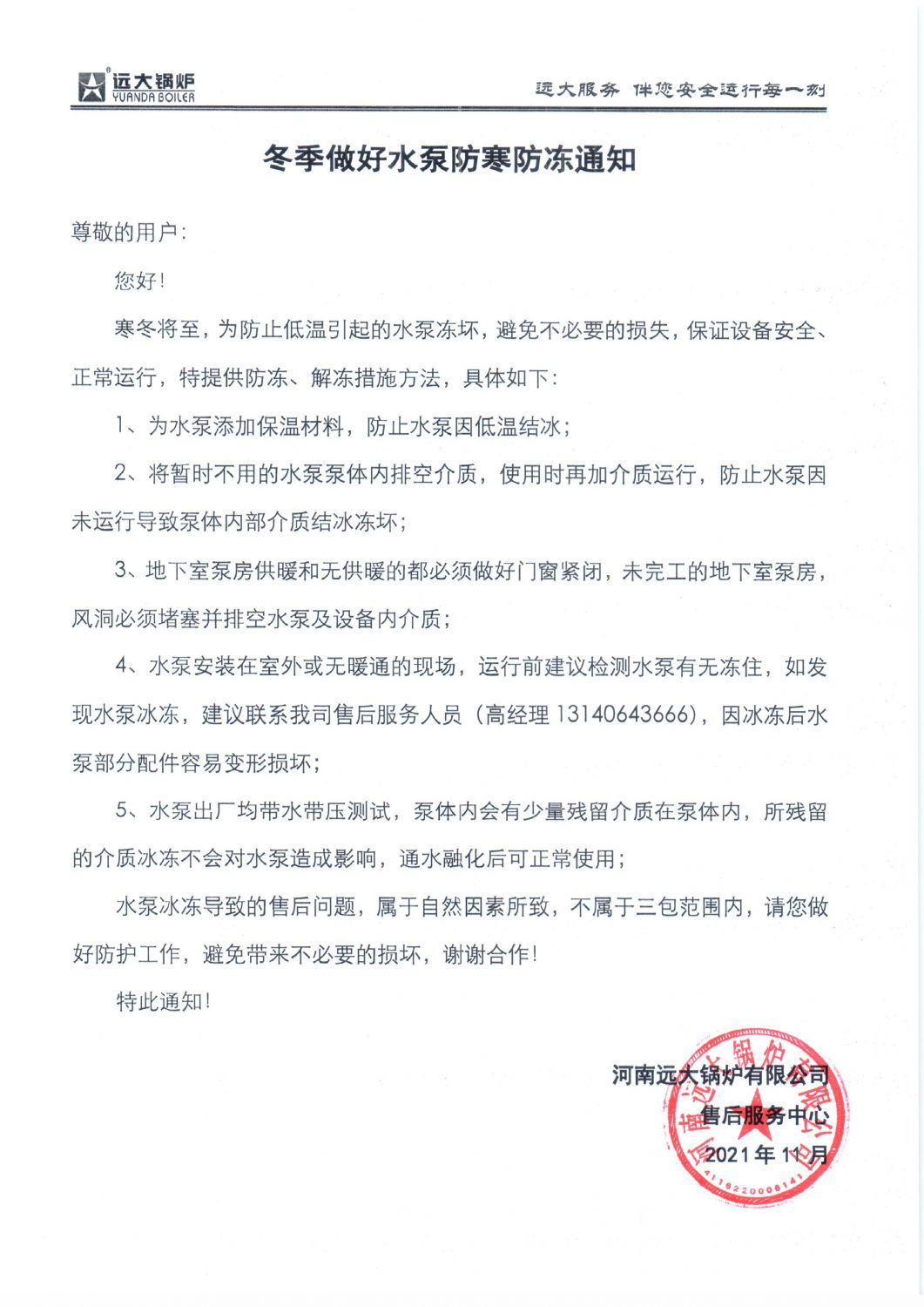 冬季做好水泵防寒防凍通知